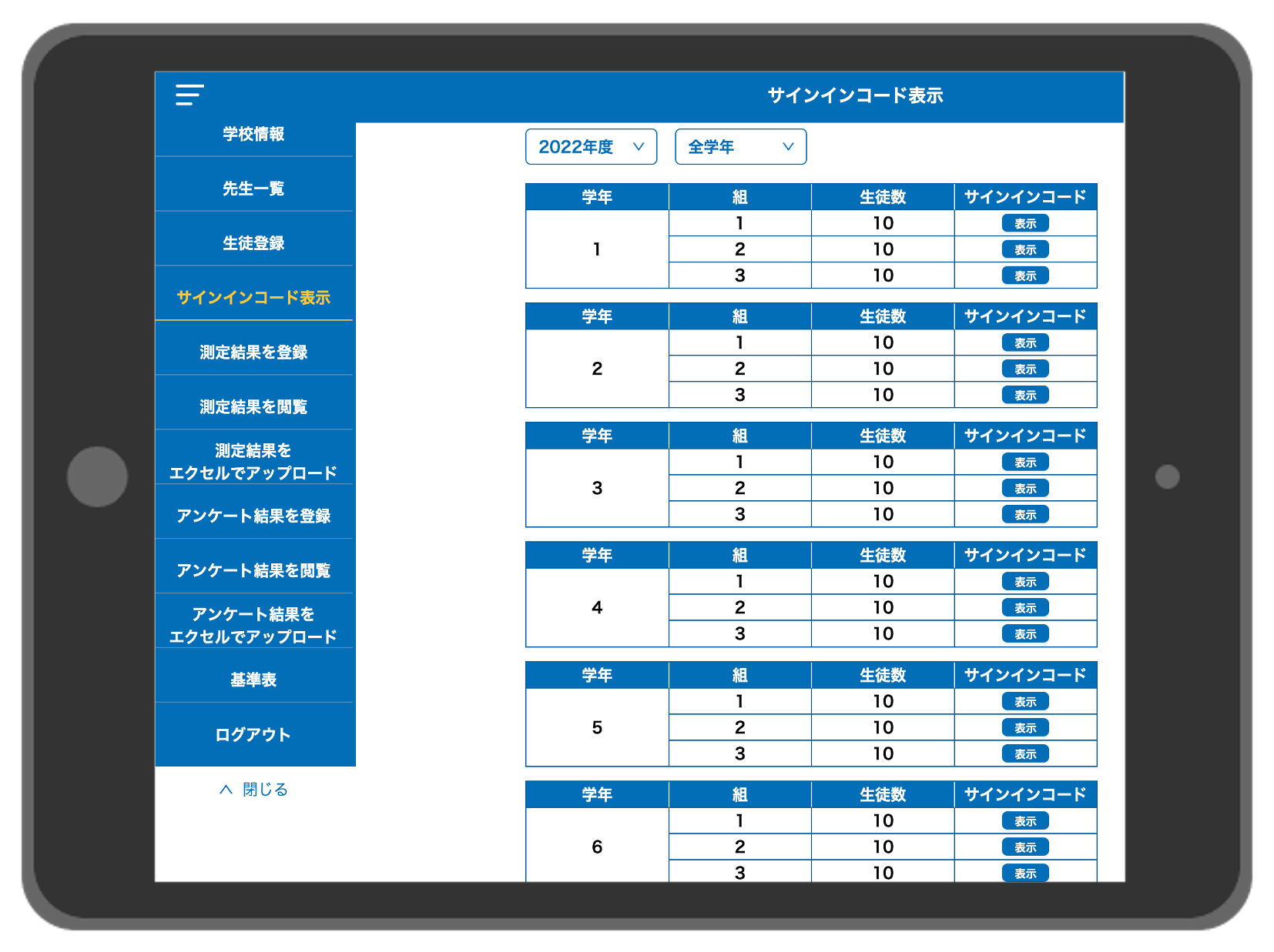 従来の方法では、記録用紙が学校に到着し学年、クラスごとに記録用紙の枚数を分けて児童生徒に配布するという手間のかかる作業をしていました。これに対し『ALPHA』では、まず教員が児童生徒情報を登録し児童生徒がサインコードを読み込んでサインインするという作業により効率的な事前準備を行うことができるようになりました。