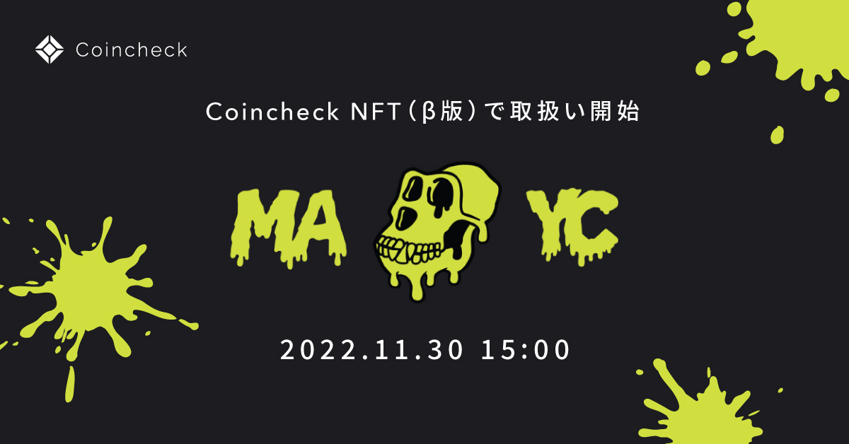 「MAYC」の詳細については、コインチェックコラム「【NFT】MAYCとは?特徴や将来性、価格や買い方を解説!」(http://bit.ly/3EhLrRt)をご覧ください。