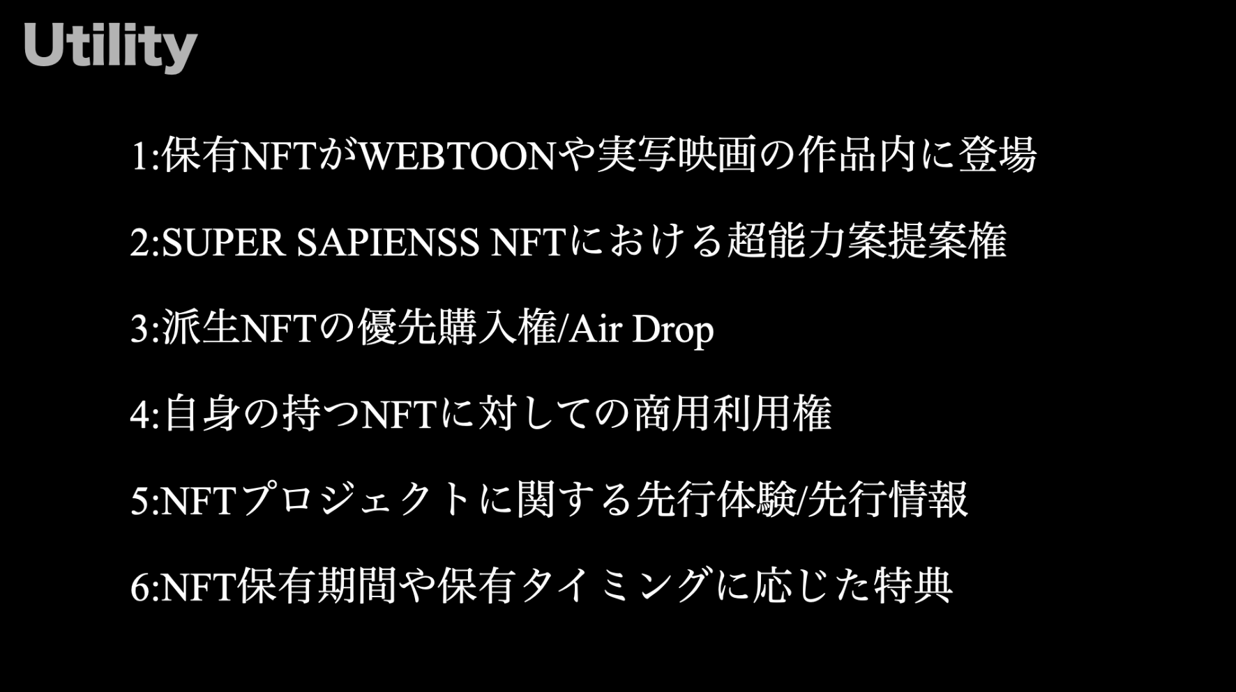 - SUPER SAPIENSS NFTのユーティリティ(保有特典)