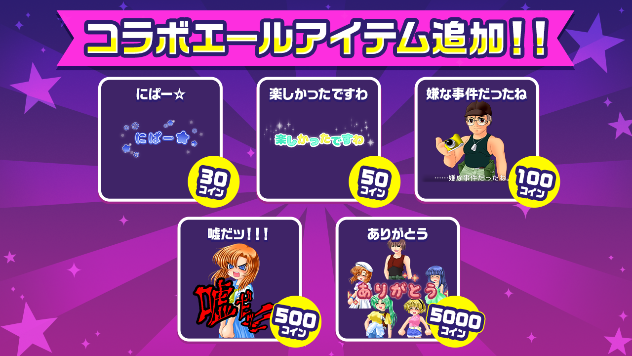 エールアイテムとはアプリ内でキャストに送ることができる応援アイテムです。期間中はコラボ仕様のエールアイテムをアプリ内課金によって購入することができます。