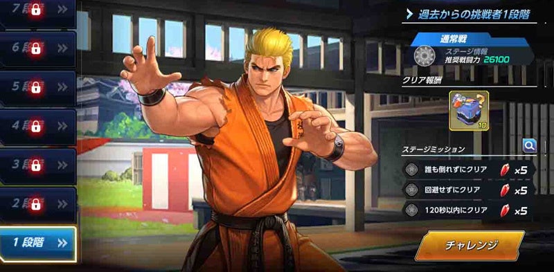 新ファイター「XV覇王丸」と「XVナコルル」のいずれかを獲得した際にオープンするスペシャルクエストです。指定されたファイターを編成して30段階で構成された各ステージの突破に挑戦します。各ステージの初クリア時に「ナコルルサイコロ」や「チームサムライバッジ」などの報酬を獲得できます。