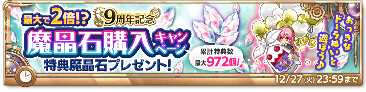 9周年を記念して「魔晶石購入キャンペーン」を開催します。