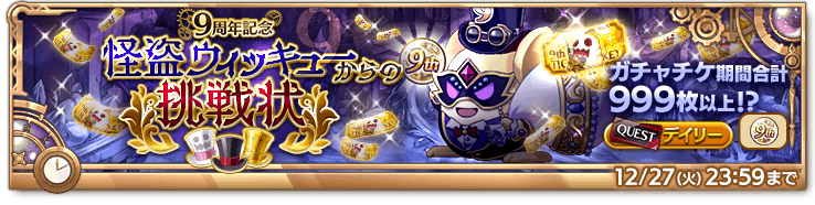 ■合計999枚以上のガチャチケが手に入るかも!?「怪盗ウィッキューからの挑戦状」開催!