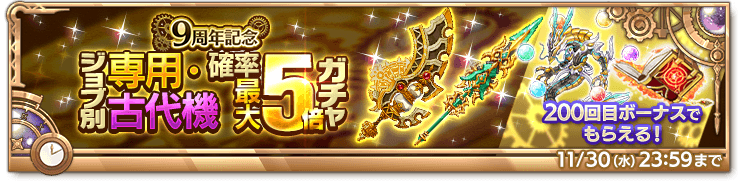 ■戦力を手に入れる大チャンス!「ジョブ別 9周年記念 専用・古代機確率最大5倍ガチャ」販売!