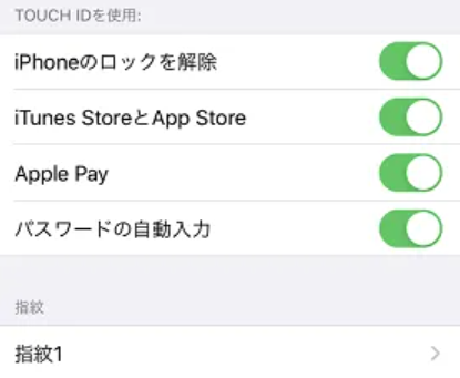 Step3:「TOUCH IDを使用」の項目がオンになっていること、指紋が登録済みであることを確認します。