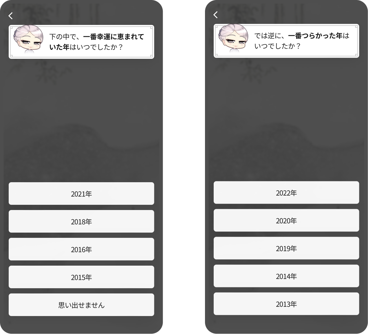 なお、実際あなたに作用している良い運気が何かを把握するため、良い出来事のあった時期や一番つらかった時期をお聞きします。