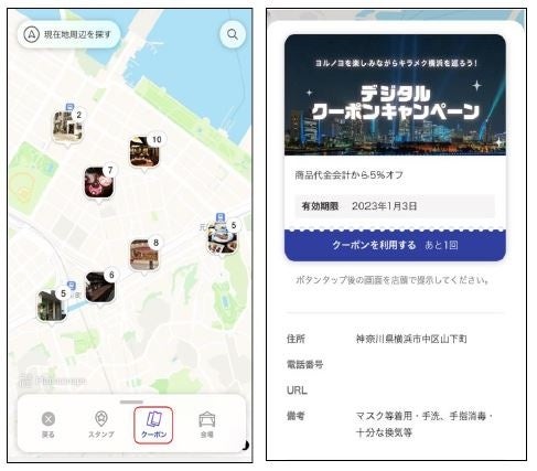 デジタルのマップ上で、横浜エリアですぐに使える・お得なデジタルクーポンを配布します。