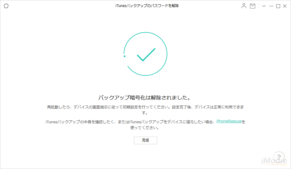 以上はiPhoneのバックアップのパスワードを忘れた時の解除・復元方法です。いかがでしょうか?必要に応じて、「iTunesバックアップのパスワードを解除」または「iTunesバックアップのパスワードを復元」を選択してください。