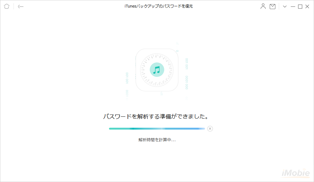Step 4.パスワード復元設定が完了したら、暗号化されたiTunesバックアップパスワードの復元が開始されます。解析時間はパスワードの複雑さによって変わりますから、しばらくお待ちください。
