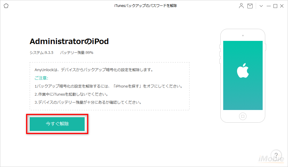 AnyUnlockは、iPhoneのバックアップの暗号化を無効化する、iTunesバックアップバックアップのパスワードを解析することができます。分かり安くて、初心者にも手軽に使えます。