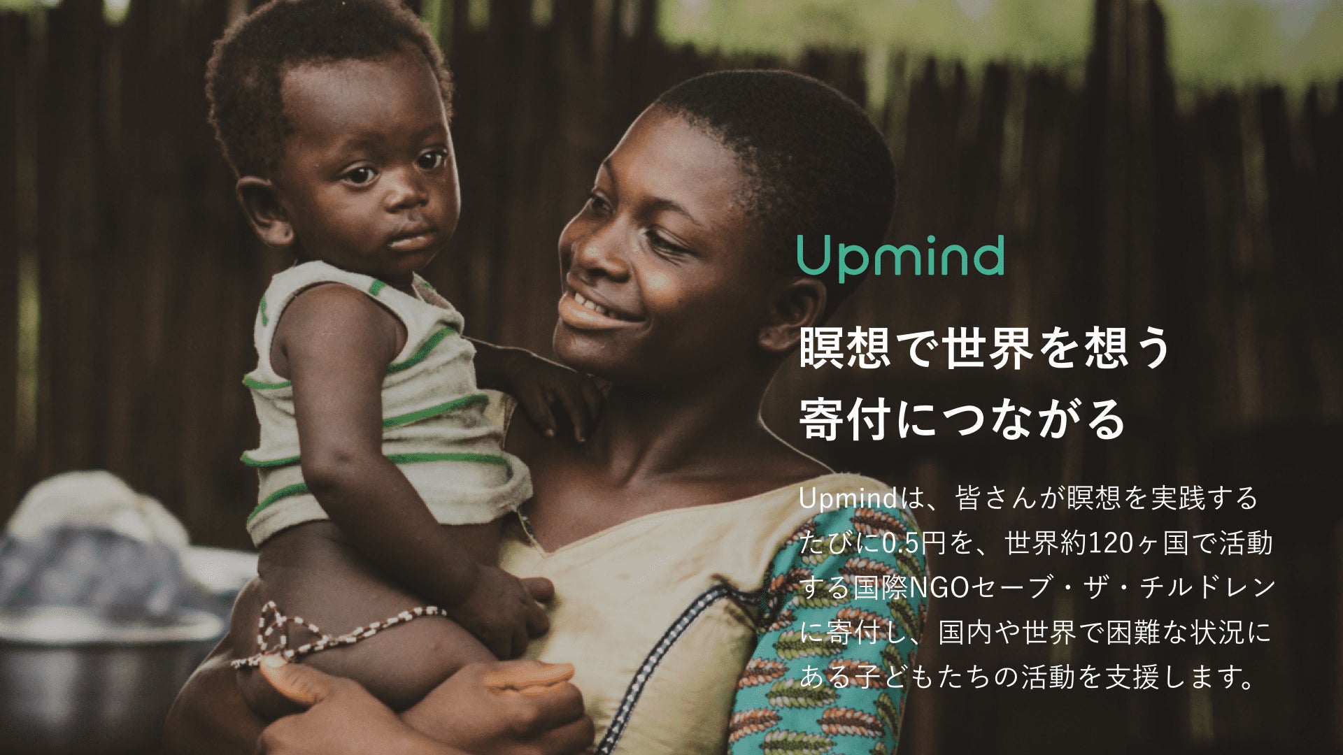 セーブ・ザ・チルドレンは、子どもの権利のパイオニアとして100年以上の歴史(1919年に創設)を持つ、子ども支援専門の国際NGOです。現在、日本を含む30ヶ国の独立したメンバーが連携し、約120ヶ国で子ども支援活動を展開。約100年にわたり、「子どもの権利」が実現された世界を目指し、栄養不良、感染症の予防や治療など保健・栄養をはじめ、他に人道支援や教育など幅広い分野を中心に子供たちの支援を行っています。Upmindは、今回、ユーザーの方が瞑想を実践するたびに0.5円をセーブ・ザ・チルドレンに寄付し、国内や世界で困難な状況にある子どもたちの活動を支援します。