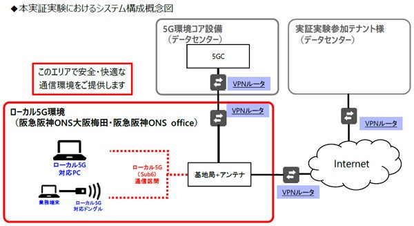 そこで、今回の実証実験では、阪急大阪梅田駅直結のサテライトオフィス「阪急阪神ONS大阪梅田」・「阪急阪神ONS office」(※4)において、ローカル5G通信環境を構築し、実際に複数の企業にイントラネットに接続したオフィスワークを試験的に行っていただくことで、ローカル5Gの優位性を検証し、サテライトオフィスの利用価値向上につなげていくことを目指します。