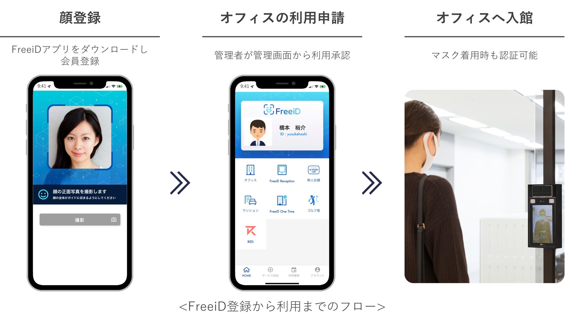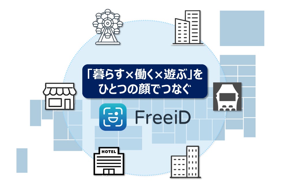 「FreeiD」は鍵や財布・スマホを持たずに、手ぶらでリアルな世界でのあらゆる行動(「入退」「本人確認」「決済」)を繋ぐ顔認証プラットフォームです。