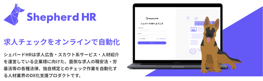 「シェパードHR」は、AIを活用して求人のチェック工程を自動化するSaaS型サービスです。プラスゼロの持つ自然言語処理技術を用いて開発した独自アリゴリズムにより、多様なテキスト表現に対応します。シェパードHRを活用することで、ヒトの目視によるチェックと比べ、効率化を実現しながらチェックを行うことができます。