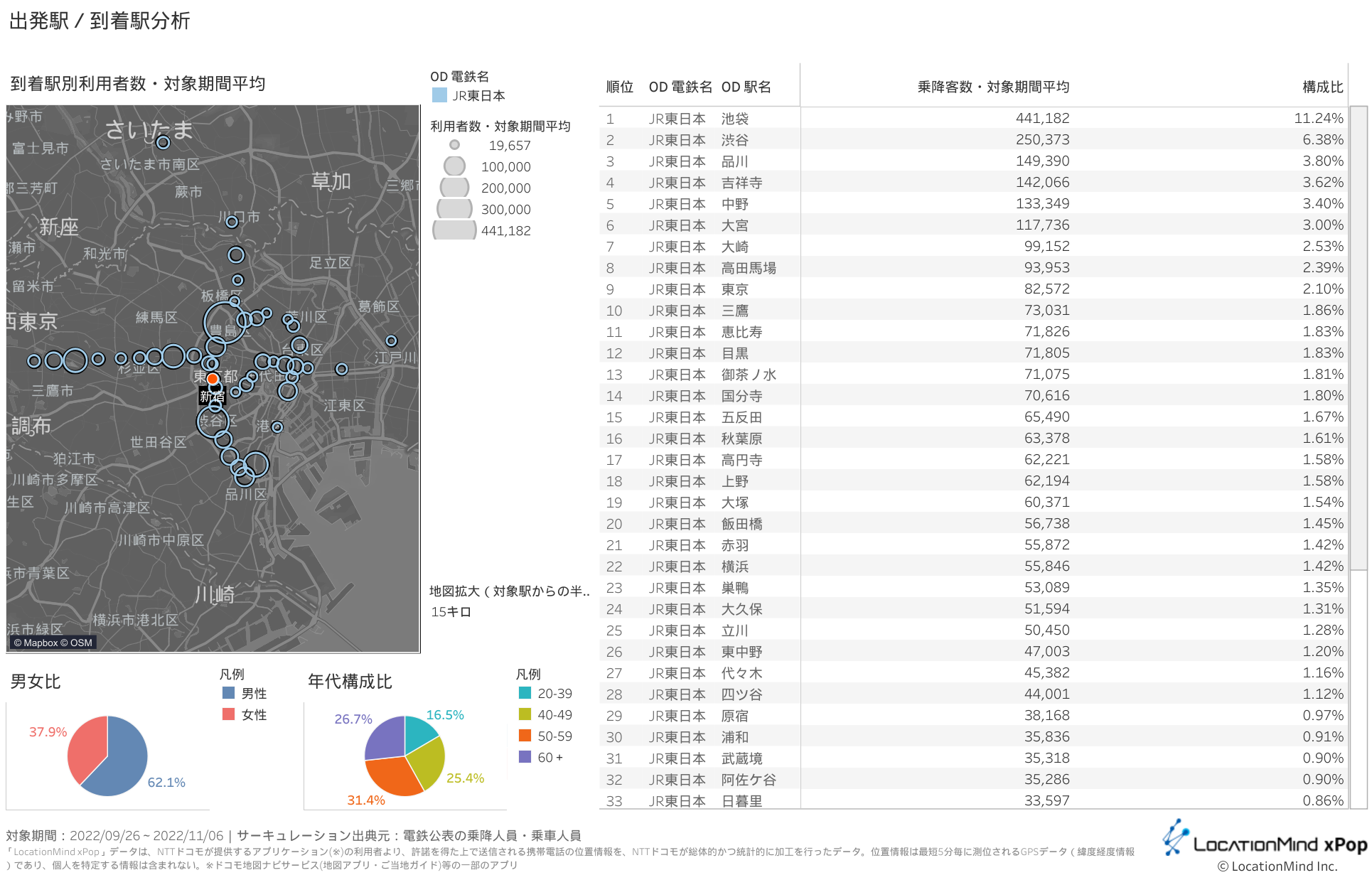・「LocationMind xPop™ for Station」鉄道改札駅通過人数を推定するダッシュボード