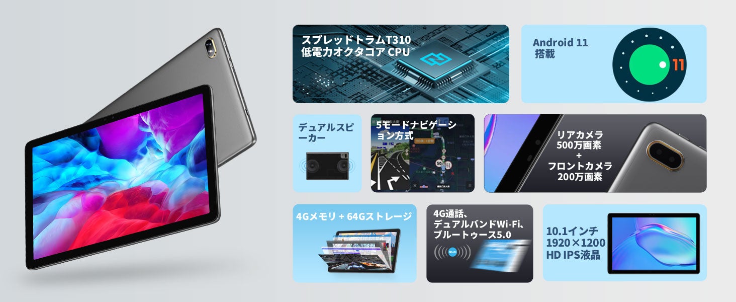 15820 | エントリーレベル優先 軽量薄型のメタルボディ設計 10.1インチFHD IPSディスプレイ UNIOC T310 Android 11 OS 4GB RAM +64GB ROM |