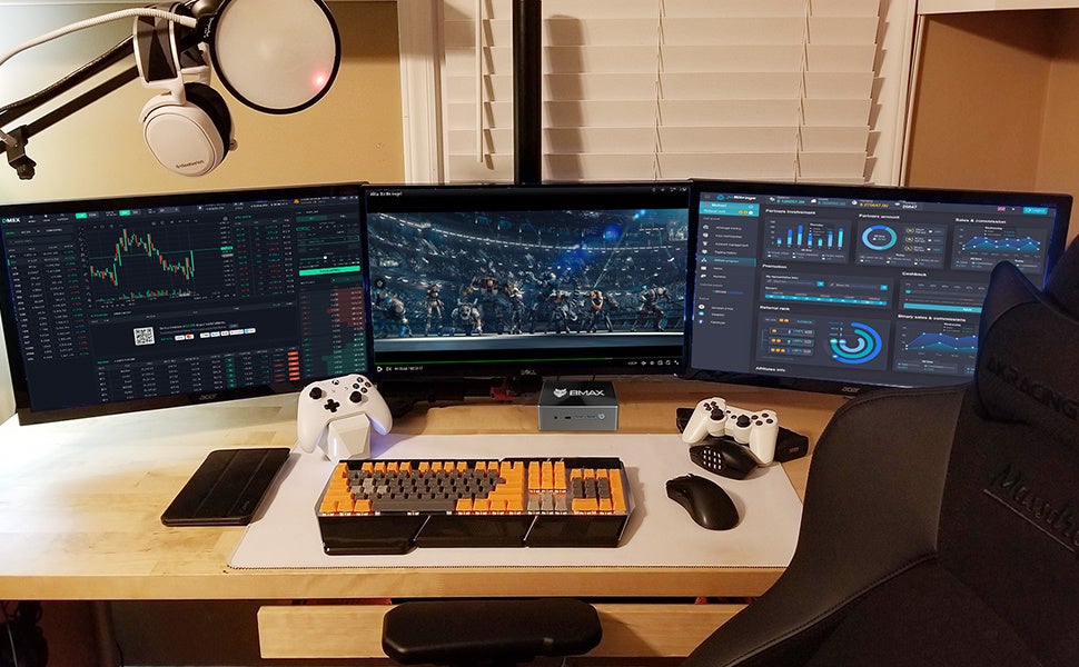 BMAX B5 Proは、HDMI端子、mini DP(4K/60Hz)端子、Type-C端子で3台の4Kディスプレイに対応し、その組み合わせに制限はありません。
