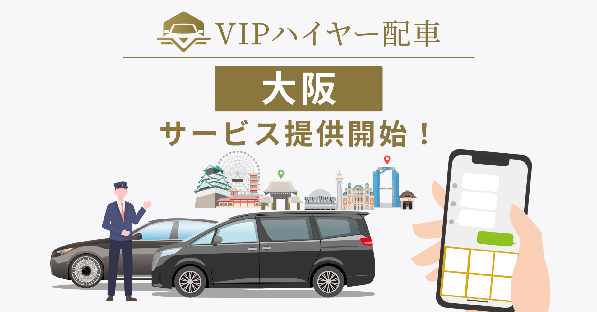 「VIPハイヤー配車」は、2020年にスタートしてから現在に至るまで、東京近郊エリアでのみサービスを提供し、約5万人の登録ユーザー (*1) にご愛顧頂いて参りました。数十のハイヤー会社と提携し、登録車両数・ドライバー数ともに1000超となっております。同サービスが東京近郊エリア以外の新たなエリアに展開するのは、今回の大阪展開が初めてとなります。