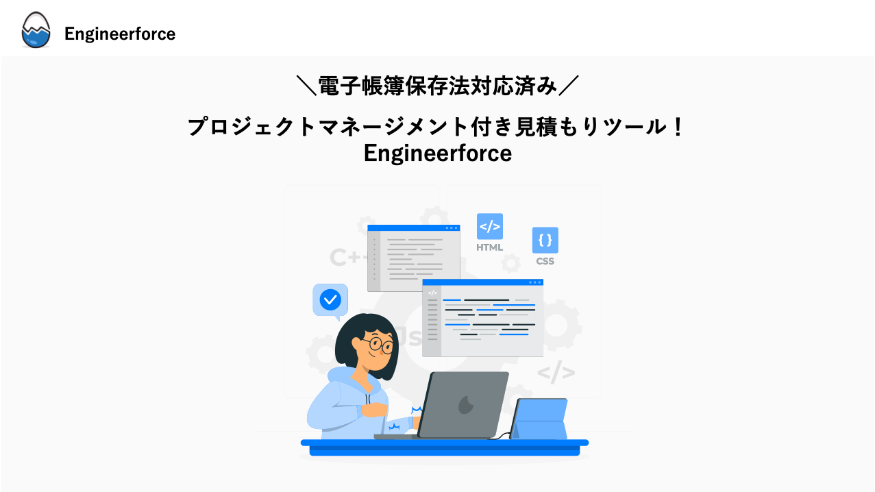 株式会社Engineerforceは、IT業界の非効率を解消するというミッションを掲げ、見積もりマネジメントシステム「Engineerforce」の開発を行なっております。本システムは見積もり作成に関わる手間や負担を減らし、ITエンジニアの生産性の向上を図るツールです。見積もりに関する情報をSaaSモデルで提供することにより、情報の一元化や共有をスムーズに行うことができます。
