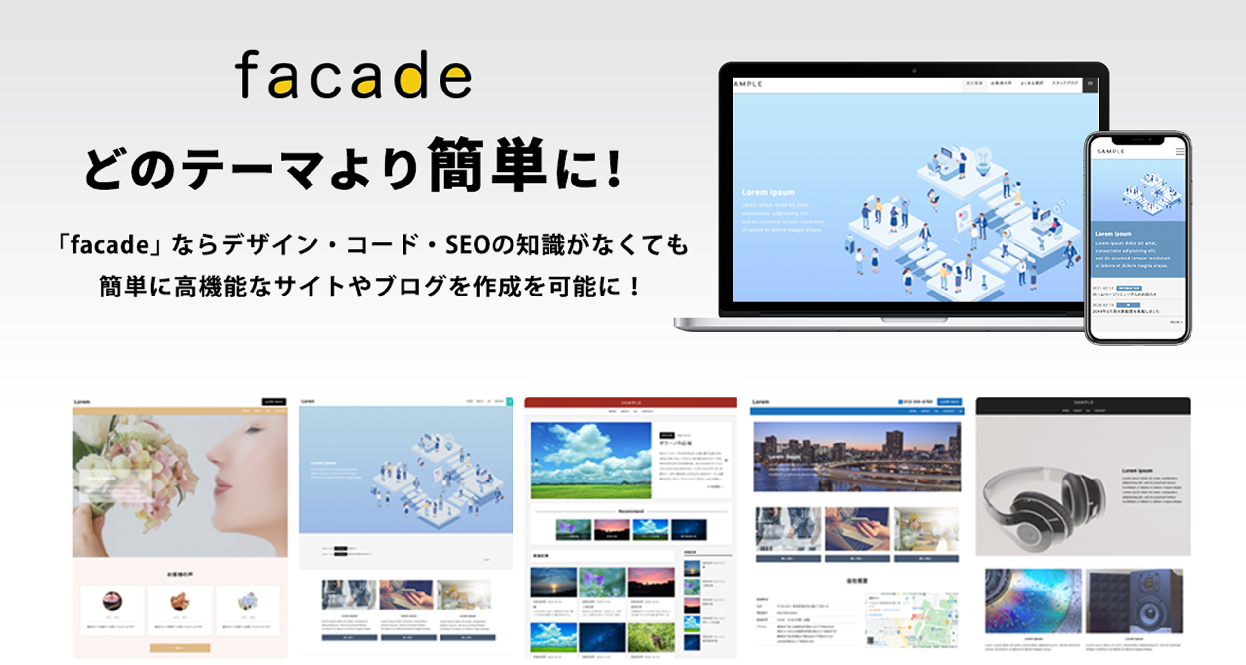 WordPressテーマ「facade」代行設置の特別価格キャンペーン実施中。コーポレートサイトや個人ビジネスのサイト作成にオススメのテーマ「facade」を特別価格で代行設置いたします。35,000円、月額料金なしでホームページを持てるチャンスです。