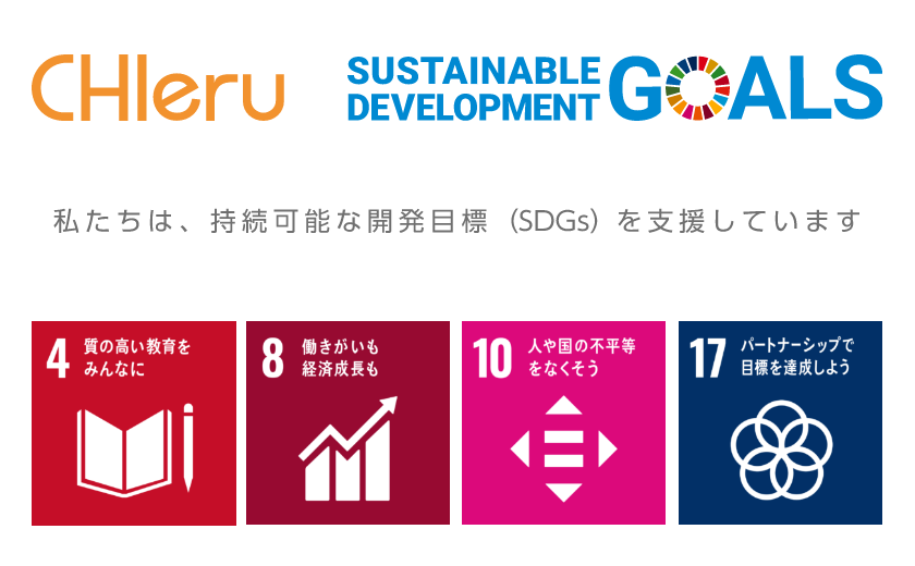 チエルでは中期経営計画でSDGsで掲げられている「4.質の高い教育をみんなに」「8.働きがいも経済成長も」「10.人や国の不平等をなくそう」「17.パートナーシップで目標を達成しよう」の4つの目標に対する取り組みを行っています。2021年度には環境に配慮した取り組みとして、紙媒体で納品していた製品マニュアルを電子化し、B5用紙を72,000枚削減いたしました。