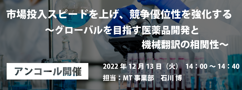 本ウェビナーでは、「市場投入スピードを上げ、競争優位性を強化する~グローバルを目指す医薬品開発と機械翻訳の相関性~」と題し、日系製薬企業の競争力を高めるソリューションを探ります。