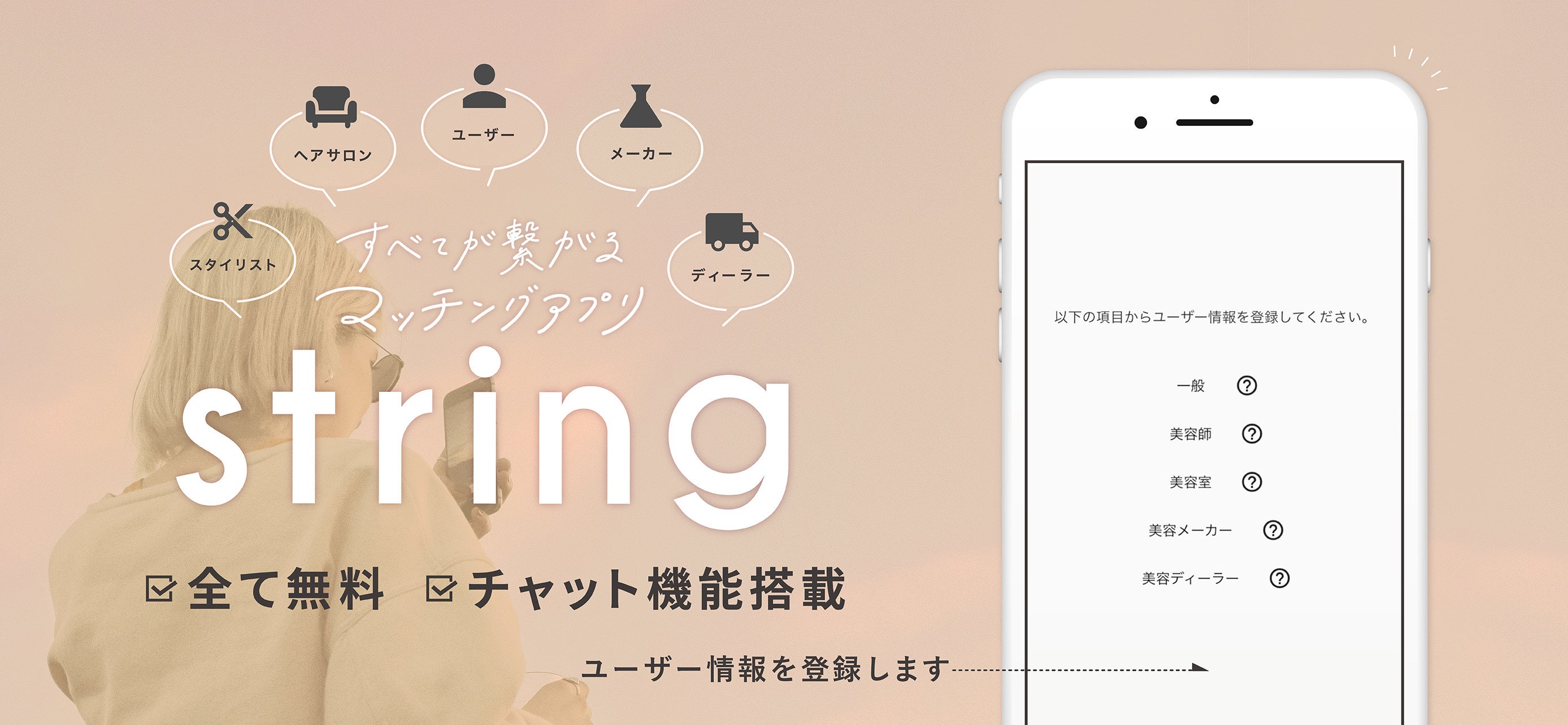 美容マルチアプリ「string」は現在、そしてこれからさらに進む、個人の時代にマッチした新しい美容マルチアプリです。
