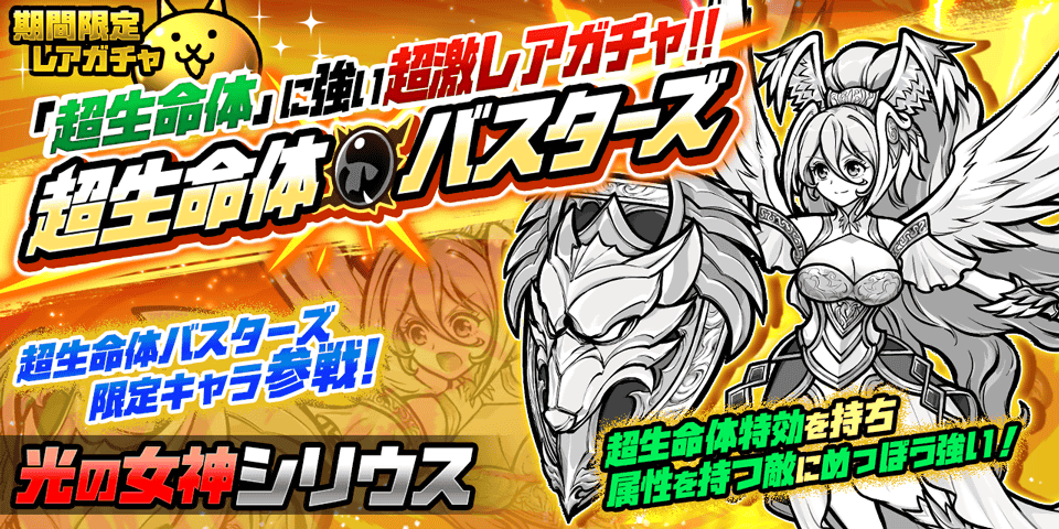 - 新たなる期間限定レアガチャ「超生命体バスターズ」登場!限定キャラクター「光の女神シリウス」が参戦!