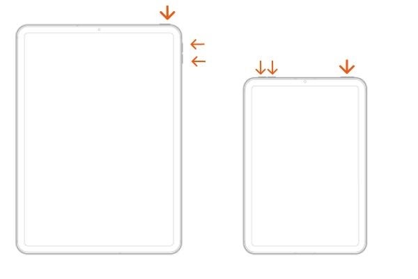 トップボタンに近いほうの音量ボタンを押してすぐに放し、トップボタンから遠い音量ボタンを押してすぐに放し、トップボタンをAppleのログが表示されるまで長押しします。