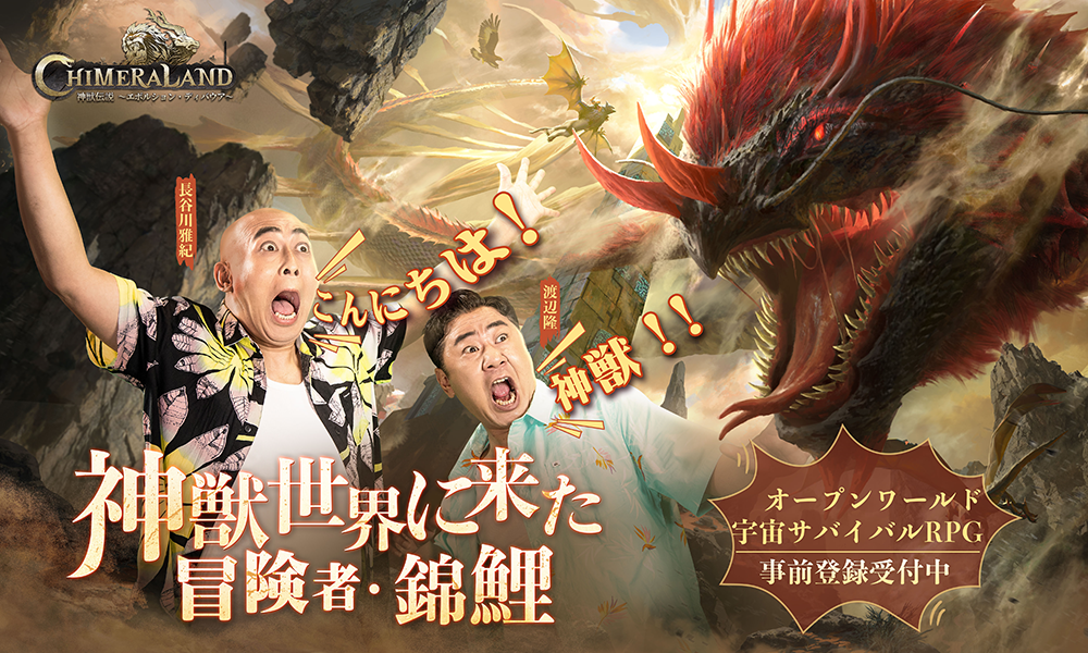 自由度の高さ、広大な世界、そしてユニークな神獣と暮らせると話題のオープンワールド宇宙サバイバルRPG『神獣伝説~エボルション・ディバウア~(旧:空想山海伝)』。本作のアンバサダーに、お笑いコンビの錦鯉さんの就任が決定しました。今回公開された特別動画では、キャンプ?を題材に錦鯉さんらしいユーモラスなストーリーが展開されます。