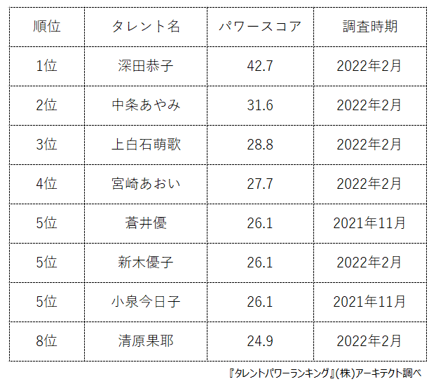 タレントパワーランキングを詳しく知りたい方はこちら↓