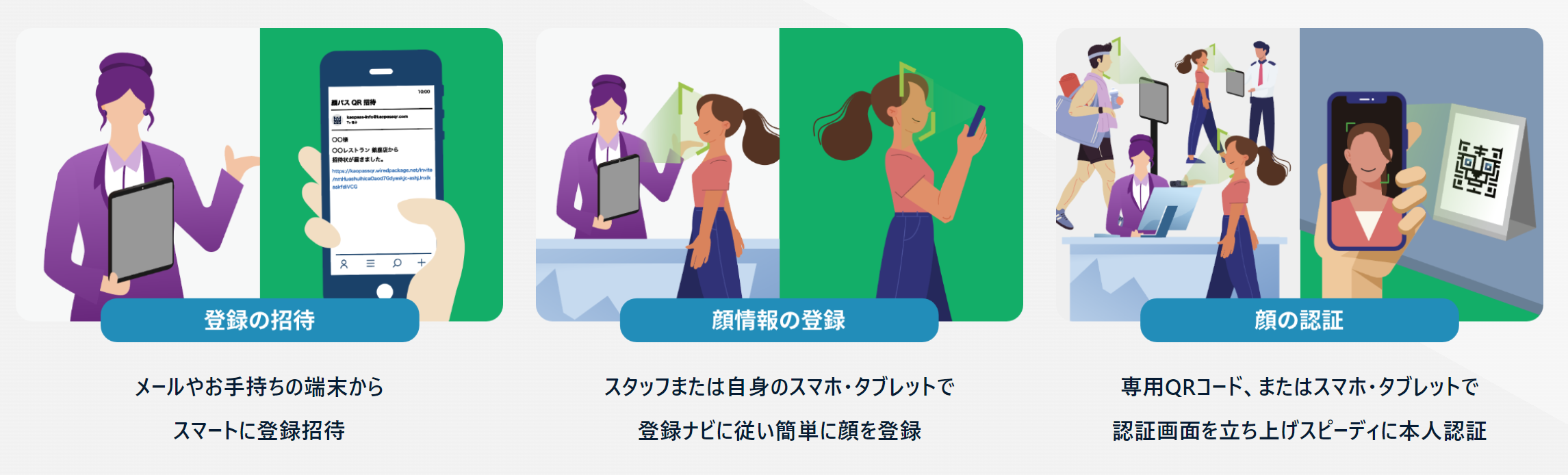 専用端末やICカード、アプリを準備することなく「顔」だけで簡単に「本人」であることを証明できるサービスのため、特別な機器や操作が必要なく、本人を認証できます。