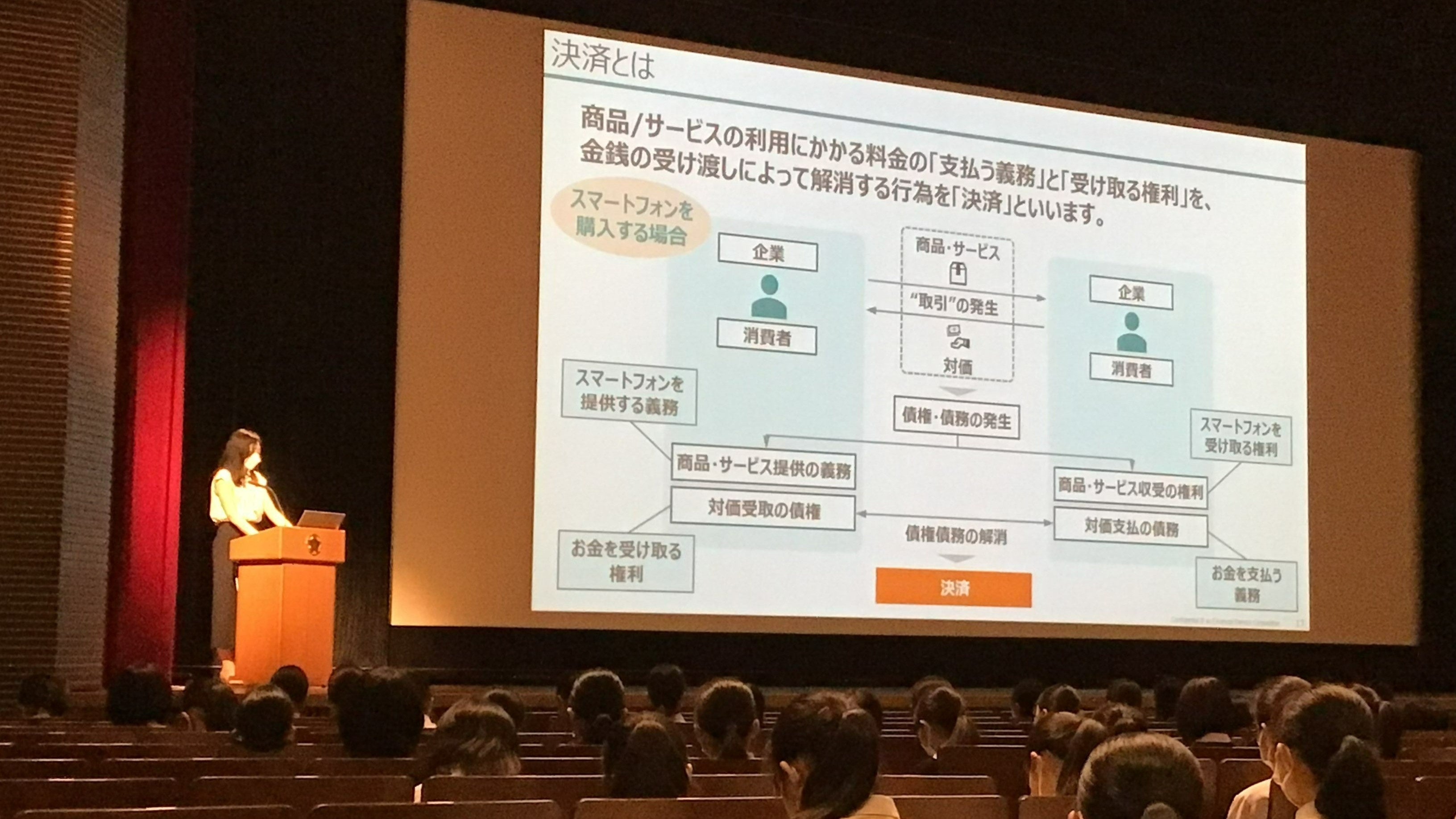 高校1年生の生徒たちは、家庭総合科目の家庭経済や消費行動について学ぶなか、決済の多様化やキャッシュレス化の進む現代において、生徒たち自身が経済的に自立し人生設計を考えるために必要な知識を習得するため、本講義に臨んでくれました。