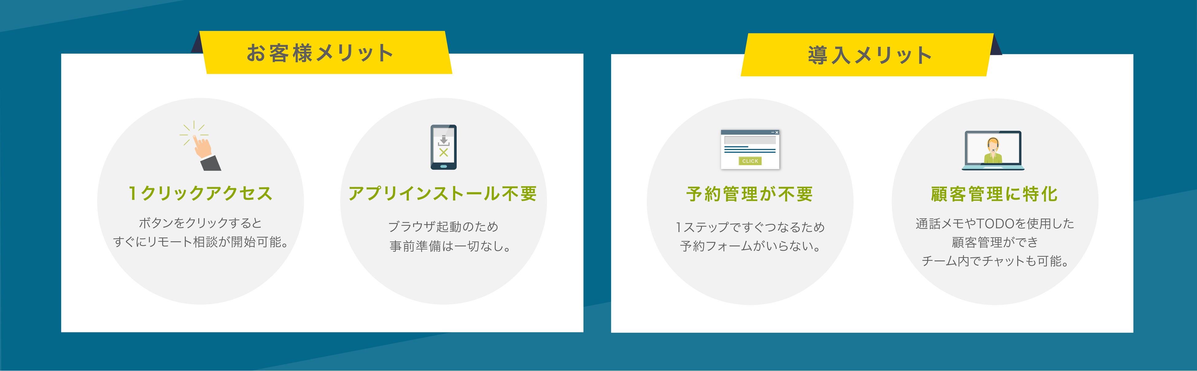 - 会議URLの発行・共有不要。アプリインストール不要。ワンクリックですぐつながる