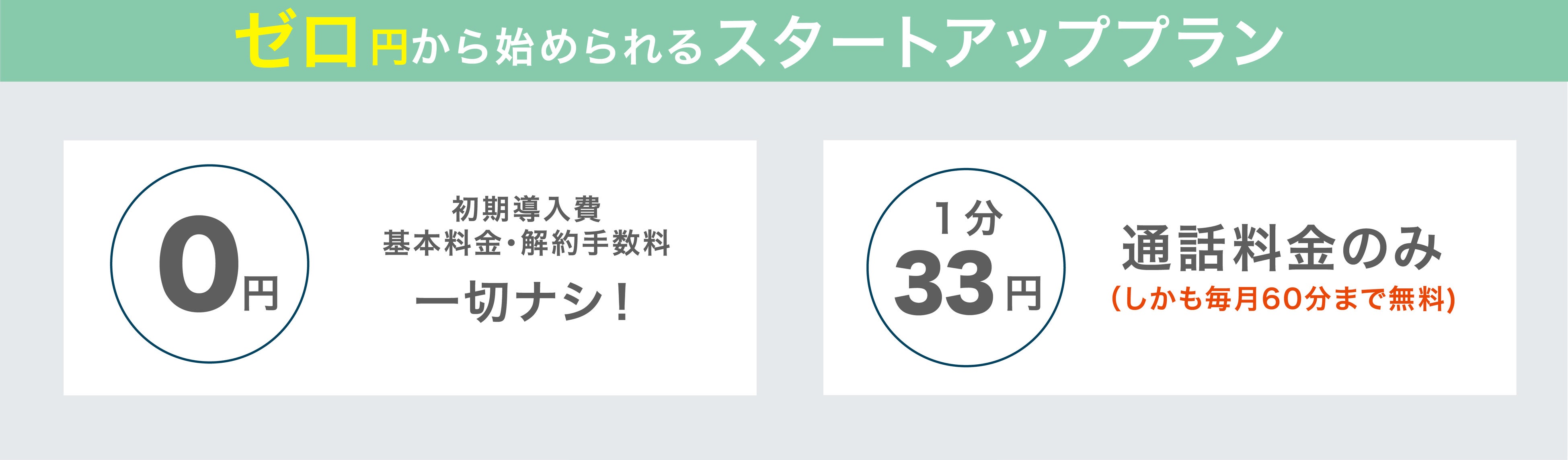 システム初期導入費無料、通話料1分33円のスタートアッププランでは、オンライン接客窓口を開設直後の顧客認知度が低い初期段階において、ランニングコストを圧倒的に抑えることが可能です。