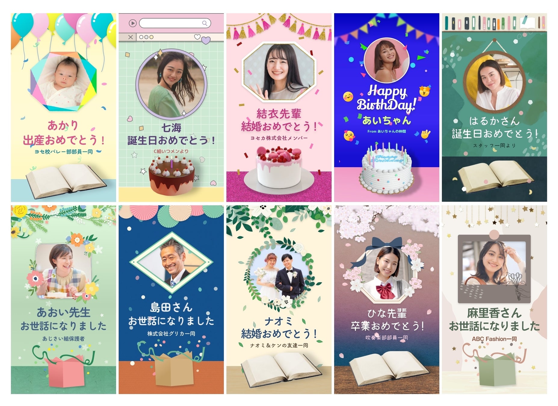 また、ヨセカ(寄せ書きプラン)と同様に、全てのメッセージフォーマット機能を使うことができますので、テキストメッセージや写真はもちろん、動画やボイスでなど、お好きなスタイルでメッセージを伝えることができます。