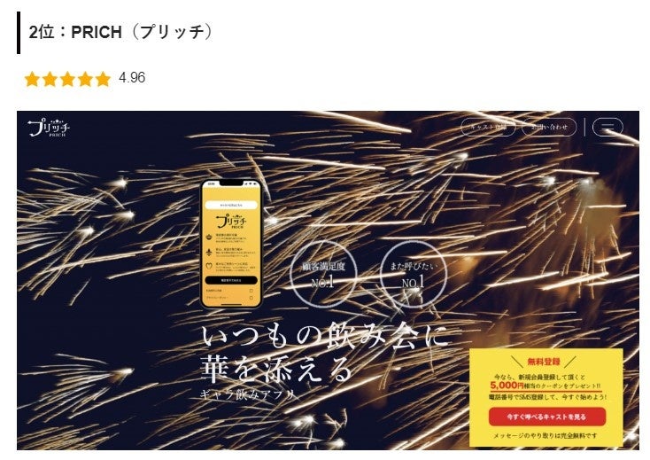 「ギャラ飲みアプリおすすめ人気ランキング14選」2位獲得記念キャンペーン