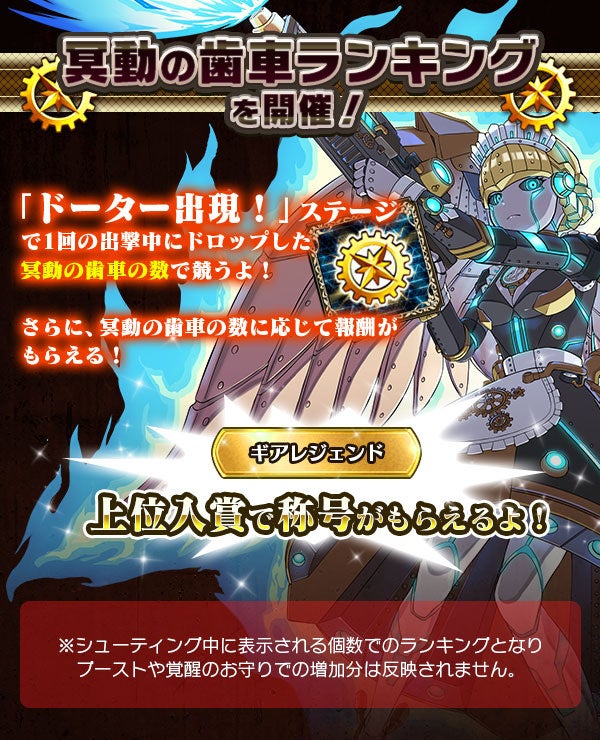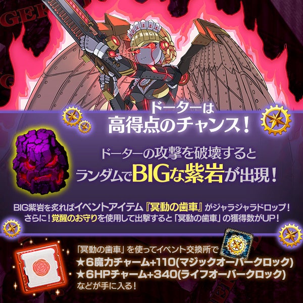 さらに、1回の出撃中にBIG悪魔岩からドロップした「冥動の歯車」の数で競うランキングを開催いたします。上位入賞者には特別な称号が与えられます。