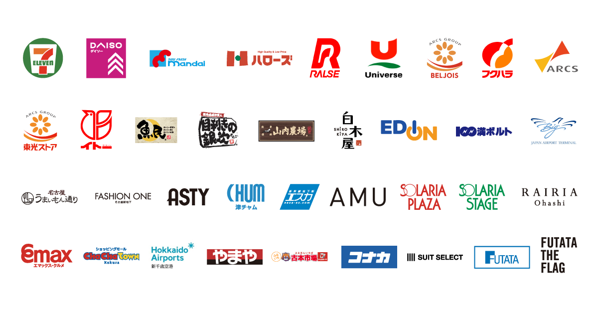 | 対象店舗 | 「セブン-イレブン」「ダイソー」「万代」「ハローズ」「ラルズ・道南ラルズ」(「スーパーアークス」「ビッグハウス」「ラルズマート」「ラルズストア」「ホームストア」「ラルズプラザ」「フレッティ」)「ユニバース」(「ユニバース」「Uマート」「パワーズU」「ビッグハウス」「ファル」)「ベルジョイス」(「スーパーアークス」「ジョイス」「ベルプラス」「ビッグハウス」「スーパーロッキー」「ロッキー」)「福原」(「スーパーアークス」「フクハラ」「ビッグハウス」「ぴあざフクハラ」)「道北アークス・道東アークス」(「スーパーアークス」「スーパーチェーンふじ」「ベストプライス」「ラルズマート」「Da*マルシェ」「ウェスタン」「ベーシック」「ビッグハウス」「フクハラ」「ファースト」)「東光ストア」「ディナーベル」「イトーチェーン」「フーズガーデン」「食品館イトー」「白木屋」「魚民」「笑笑」「目利きの銀次」「山内農場」「千年の宴」「キタノイチバ」「鶏のジョージ」「豊後高田どり酒場」「濱焼北海道魚萬」「横濱魚萬」「勝手にサワー」「ホルモンおいで屋」「福福屋」「丹波黒どり農場」「みつえちゃん」「かば屋」「俺の店」「カミナリステーキ」「からあげの鉄人」「めでた家」「月の宴」「バリヤス酒場」「しゃぶ食べ」「くろ○」「すしざむらい」「ATHREE PARLOR」「俺の串かつ黒田」「竹取酒物語」「四十五縁家」「カラオケ歌之助」「月の花」「俺の串かつ黒田×炭火焼鳥めでた家」「産直横丁」「焼肉X牛」「BARU&DINING S3」「エディオン」「100満ボルト」「日本空港ビルデング(羽田空港)」「名古屋うまいもん通り」「ファッションワン」「アスティ」「津チャム」「エスカ」「アミュプラザ」(「アミュプラザ鹿児島」「アミュプラザおおいた」「アミュプラザ博多」「アミュプラザ長崎」「アミュプラザみやざき」「JR熊本シティ」「アミュプラザ小倉」)「ソラリアプラザ」「ソラリアステージ」「レイリア大橋」「エマックスクルメ」「チャチャタウン小倉」「新千歳空港」「やまや」「古本市場」「トレカパーク」「コナカ」「SUIT SELECT」「フタタ」「FUTATA THE FLAG」 ※一部対象外の店舗があります。 ※「ダイソー」は700円(税込)以上の支払いが対象です。 |