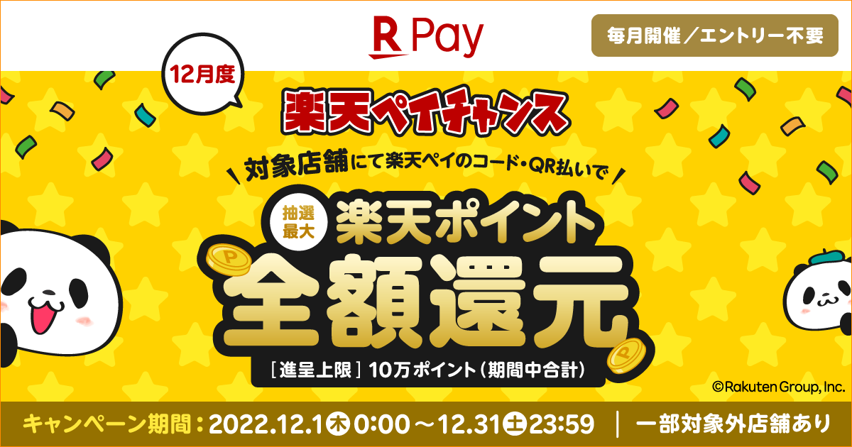 ※詳細はこちら:https://pay.rakuten.co.jp/campaign/2023/1201-paychance/