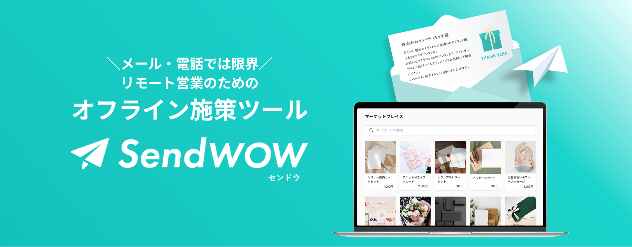 今日、ABM(Account Based Marketing)等、法人営業の成果を向上させるマーケティング施策として、「企業」単位でのアプローチではなく「人」単位でのアプローチが求められるようになりました。SendWOWは、営業活動において手紙や贈り物などのオフライン施策を中心に「相手にとって心地よい、ぬくもりある顧客接点」をデータライズ、営業・マーケティング活動へ活用し、営業の成果向上を実現しROIに貢献する全く新しいオフラインエンゲージメントプラットフォームです。