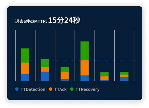 MTTR などの時間の計測だけでなく、Runbook カバレッジや、重篤度毎のインシデントの集計などインシデントレスポンスに関わるあらゆるデータを計測し可視化します。