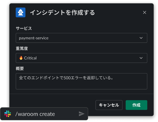 1. Slack コマンドからインシデントを作成・共有