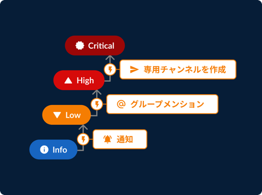 重篤度の設定に迷った時は、Waroom が重篤度を判断します。時間経過やあらゆる情報から重篤度を自動更新します。さらに重篤度毎に設定されているアクションを自動実行します。