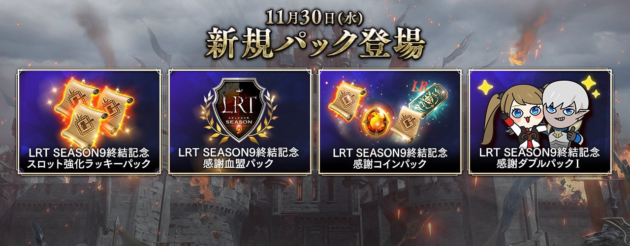 「LRT SEASON9」終結を記念した大変お得なパックを多数追加しております。