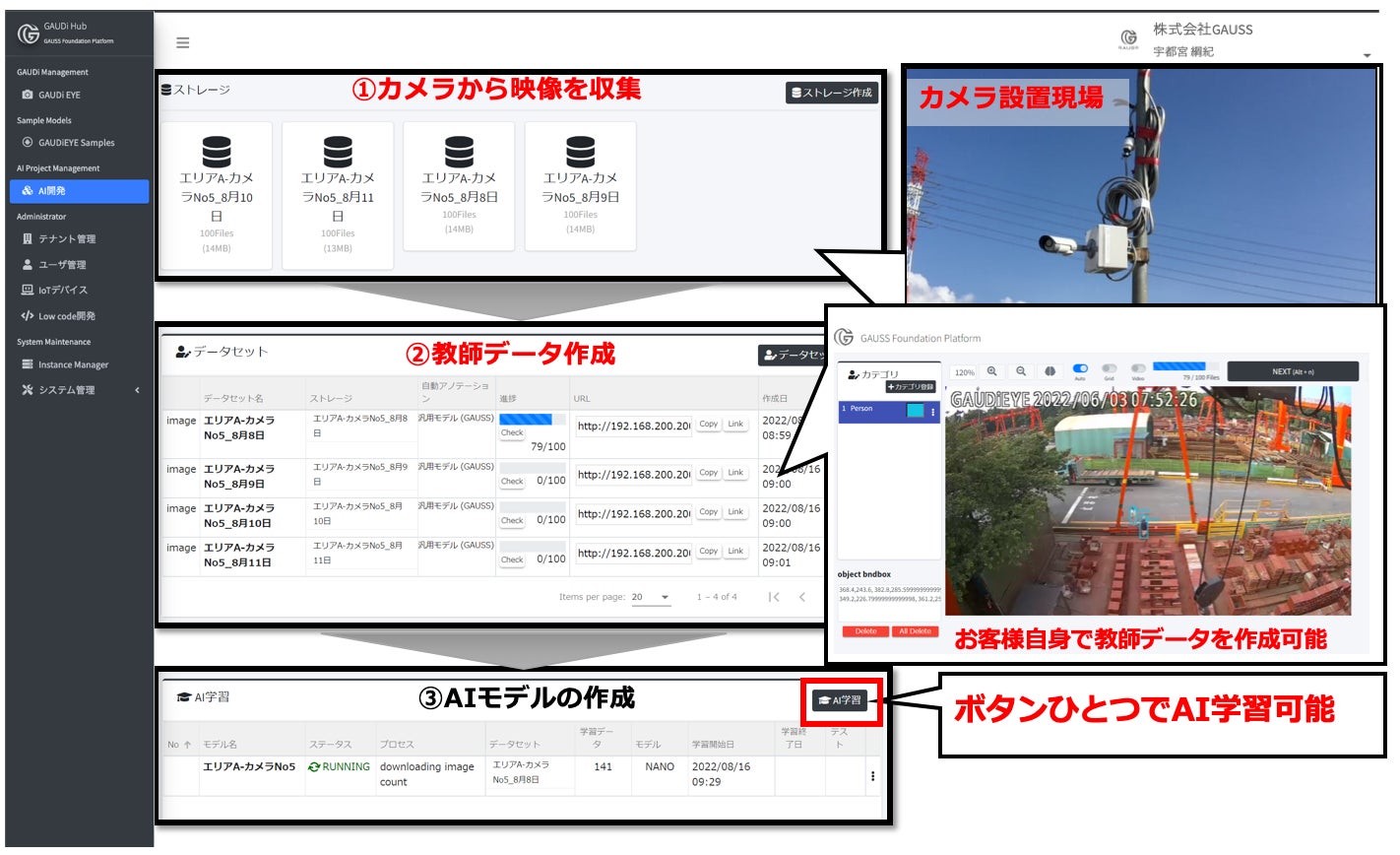 ③映像データの保存・取出、現場映像を教師データとしてAIモデルを最適化