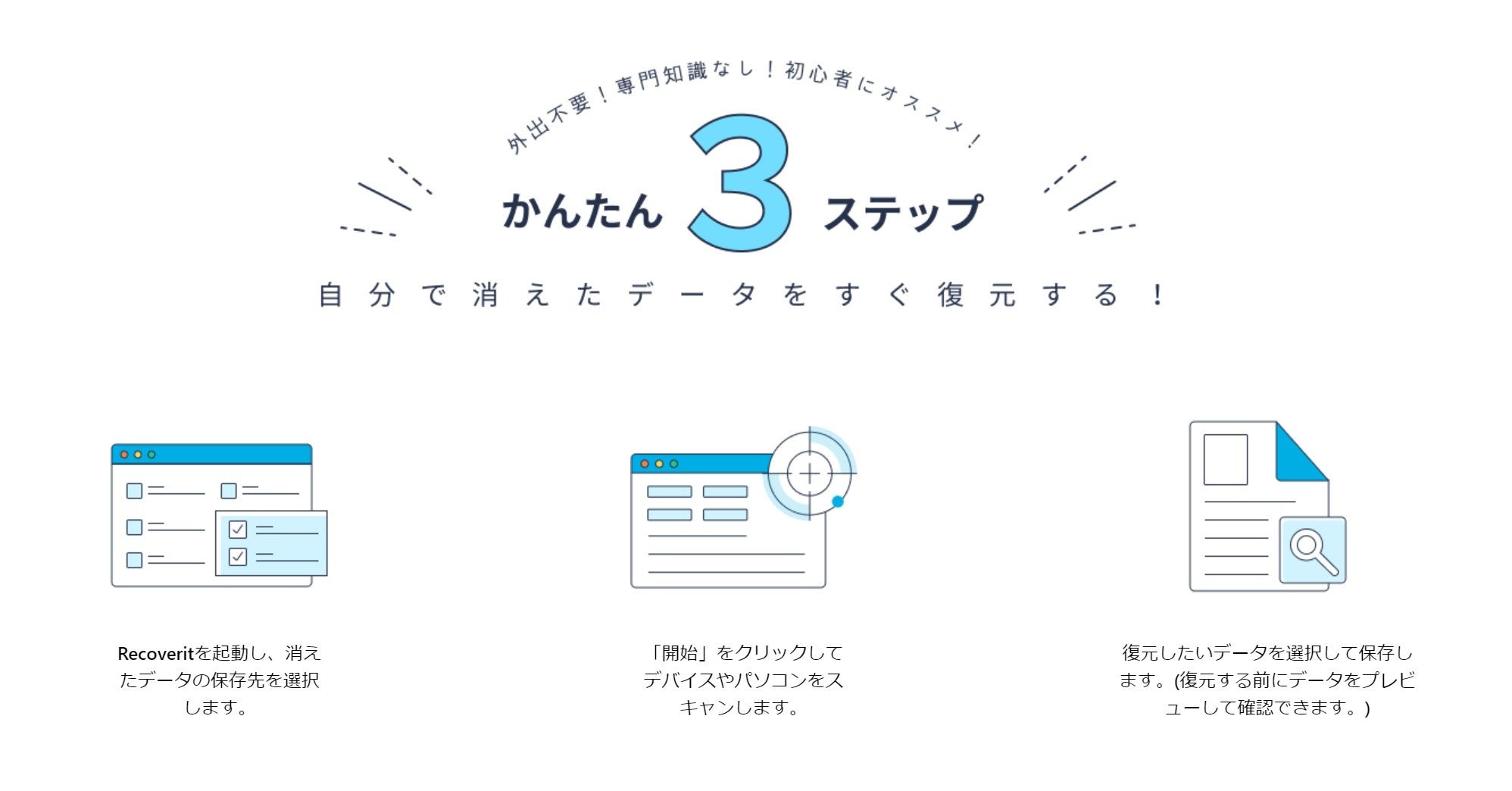 - 初心者でもたったの3ステップでデータを復元できます!