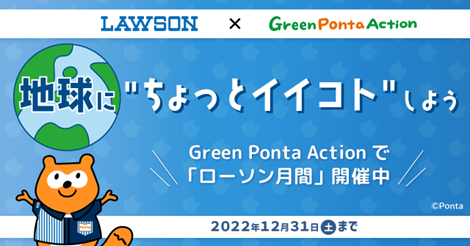 期間中、アプリユーザーの皆様にGreen Ponta Actionを通じて、ローソンのSDGs活動を紹介するとともに、気軽に楽しみながらSDGsアクションに取り組む機会を提供します。