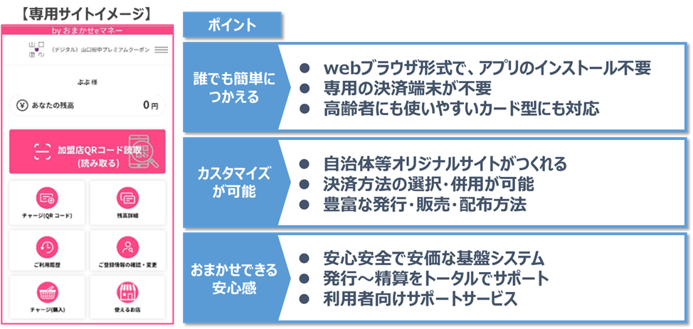 株式会社エヌ・ティ・ティ・カードソリューション(代表取締役社長:赤星 賢太、以下「NTTカードソリューション」)が提供するデジタル通貨発行代行サービス『おまかせeマネー』(以下「おまかせeマネー」)が、山口市商店街連合会(会長:森生 信雄)が実施する「(デジタル)山口街中プレミアムクーポン」のプラットフォームとして採用されました。