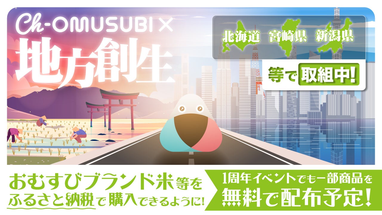 おむすびチャンネルは、北海道、新潟県、宮崎県等において、地方創生事業も進めております。特定の地域においては、地域の農家様・卸業者様と協力し、おむすびチャンネルのお米を作り、ふるさと納税プラットフォームでの販売を企画しております。また、上記した一周年記念のイベントでは、一部商品を無料で配布予定となっております。今後も事業を通じた社会貢献ができるコミュニティ・プラットフォームを目指し尽力して参ります。